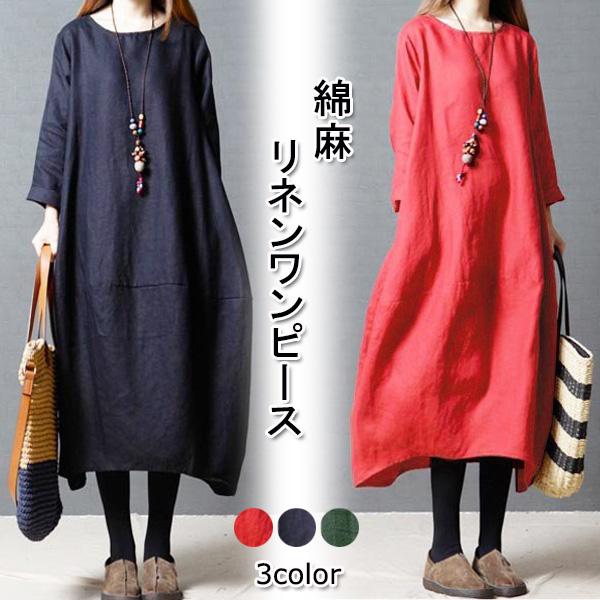 綿麻 リネン ワンピース ロング 長袖 無地 レディース ロング丈 体型カバー ゆったり ブラック カーキ レッド メール便のみ送料無2 5月1日から10日入荷予定 C Aultop 250 ディライト 通販 Yahoo ショッピング